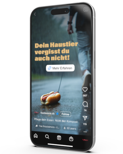 Die zentrale Leitidee, Lebensmittel wie Haustiere zu inszenieren, wurde von mir entwickelt. Durch diesen Perspektivwechsel entsteht eine emotionale Bindung und Verantwortung gegenüber Lebensmitteln. Die Kampagne nutzt Provokation und Humor und wird über Out of Home Plakate, Instagram Reels und eine Landingpage umgesetzt.